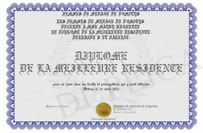 Envoyez par email votre DIPLOME DE LA MEILLEURE RESIDENTE personalisé