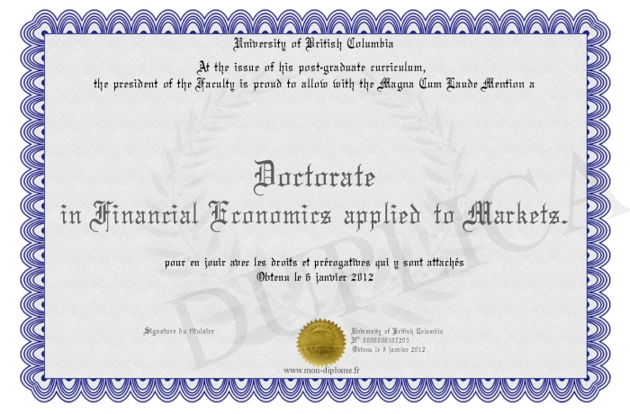 Envoyez par email votre Doctorate in Financial Economics applied to Markets. personalisé