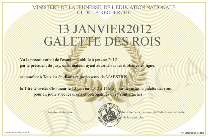 Envoyez par email votre 13 janvier2012 GALETTE DES ROIS personalisé