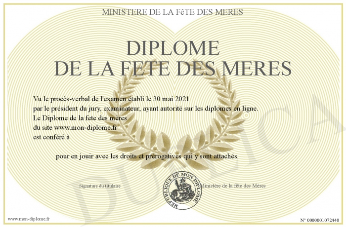 Envoyez par email votre Diplôme de la fete des mères personalisé