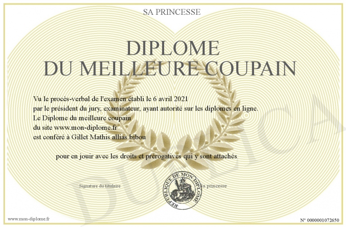 Envoyez par email votre Diplôme du meilleure coupain personalisé