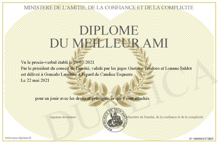 Envoyez par email votre Diplôme du meilleur ami personalisé