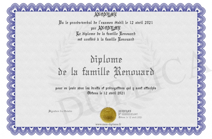 Envoyez par email votre diplôme de la famille Renouard personalisé