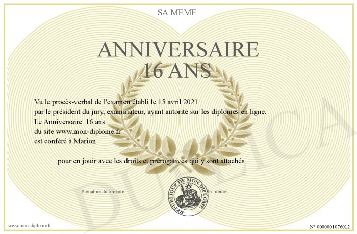 Envoyez par email votre Anniversaire 16 ans personalisé
