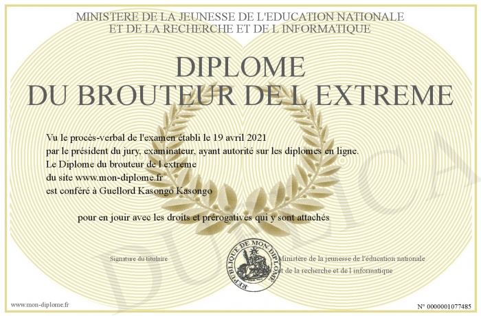 Envoyez par email votre Diplôme du brouteur de l extreme personalisé