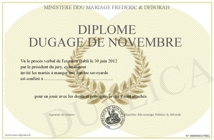 Envoyez par email votre Diplôme dugage de novembre personalisé