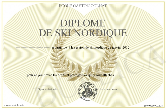 Envoyez par email votre Diplôme de ski nordique personalisé