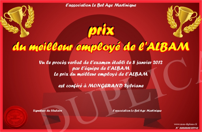Envoyez par email votre prix du meilleur employé de l'ALBAM personalisé