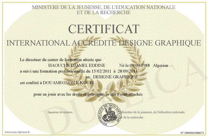 Envoyez par email votre Certificat international accrédité Désigne Graphique personalisé