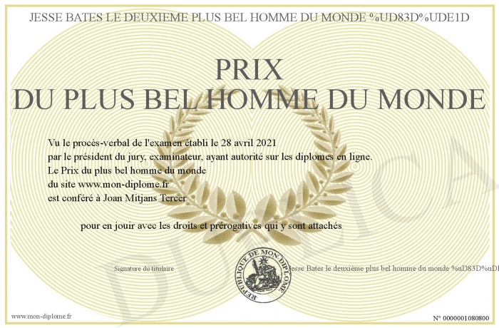 Envoyez par email votre Prix du plus bel homme du monde personalisé