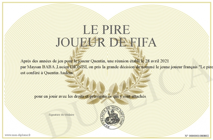 Envoyez par email votre Le pire joueur de fifa personalisé