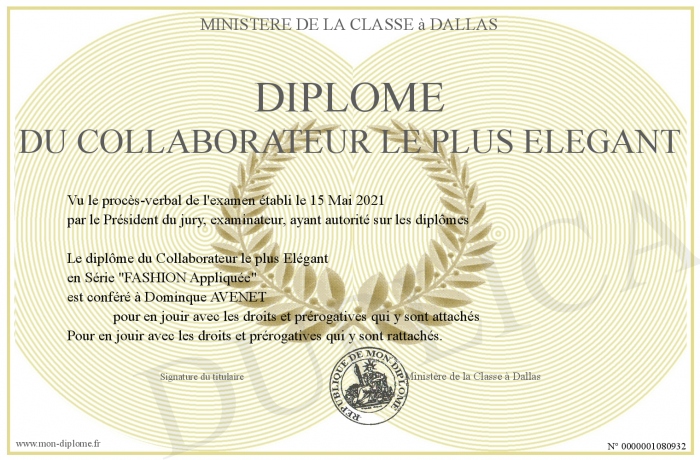 Envoyez par email votre Diplôme du Collaborateur le plus Elegant personalisé