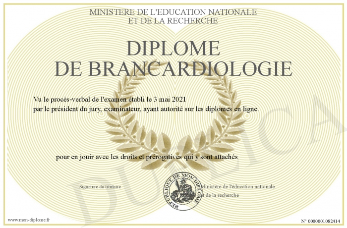 Envoyez par email votre Diplôme de Brancardiologie personalisé