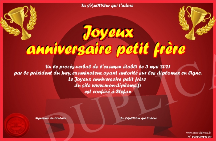 Envoyez par email votre Joyeux anniversaire petit frère personalisé
