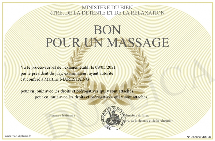 Envoyez par email votre Bon pour un massage personalisé