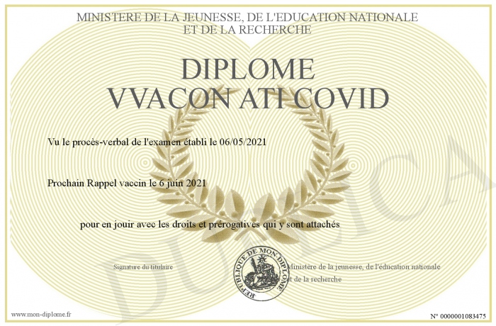 Envoyez par email votre Diplôme vvacon ati covid personalisé
