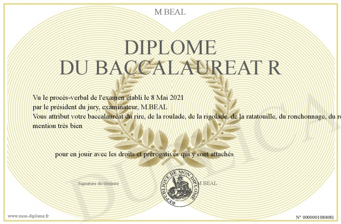 Envoyez par email votre Diplôme du baccalaureat R personalisé
