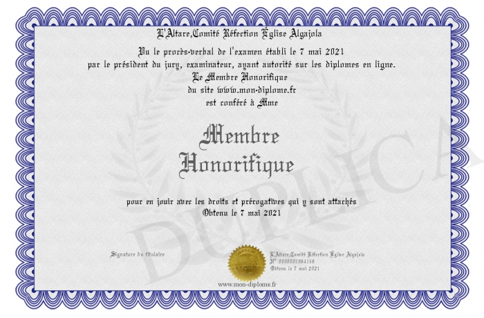 Envoyez par email votre Membre Honorifique personalisé