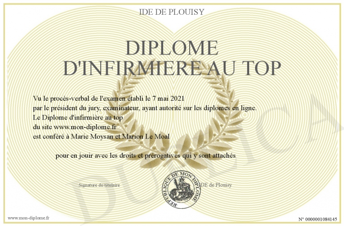 Envoyez par email votre Diplôme d'infirmière au top personalisé