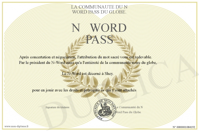 envoyé par le La Communauté du N-Word Pass du Globe. !
