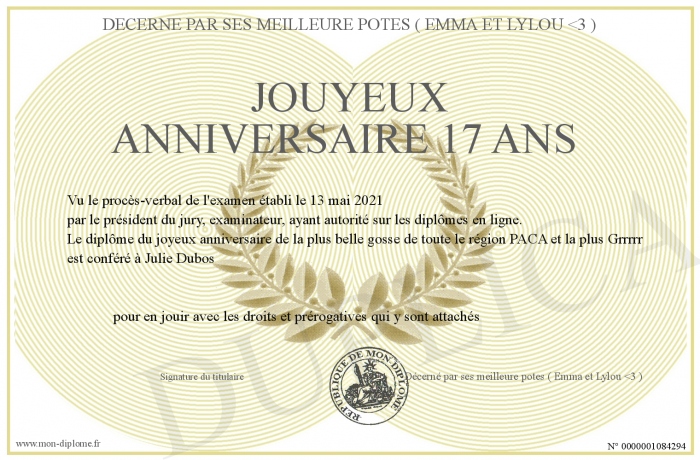 Envoyez par email votre Jouyeux anniversaire 17 ans personalisé
