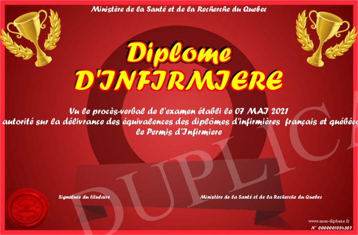 Envoyez par email votre Diplôme D'INFIRMIERE personalisé