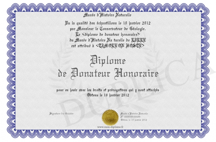 Envoyez par email votre Diplome de Donateur Honoraire personalisé