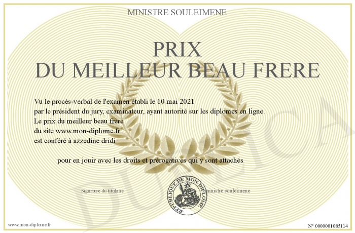 Envoyez par email votre prix du meilleur beau frère personalisé