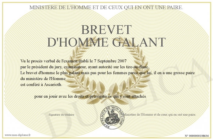 Envoyez par email votre Brevet d'Homme galant personalisé