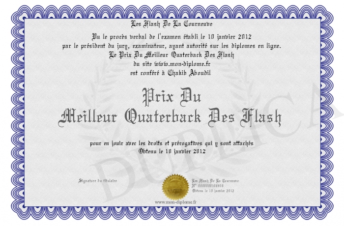 Envoyez par email votre Prix Du Meilleur Quaterback Des Flash personalisé