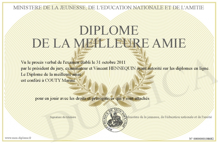 Envoyez par email votre Diplôme de la meilleure amie personalisé