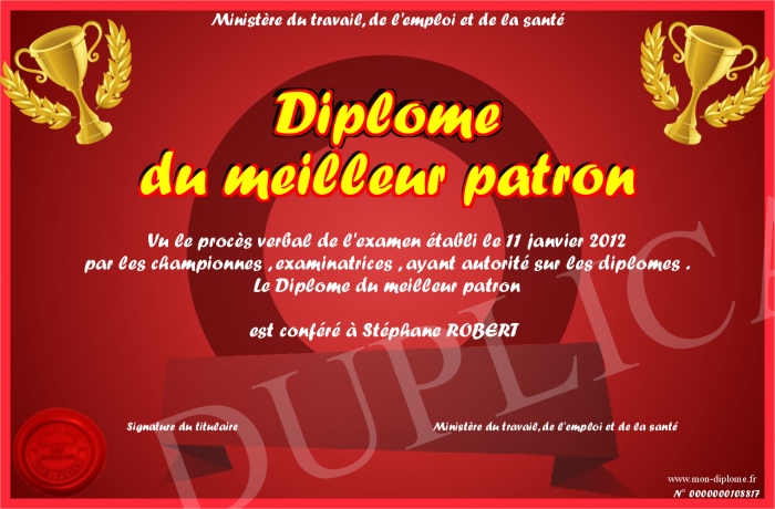 Envoyez par email votre Diplome du meilleur patron personalisé