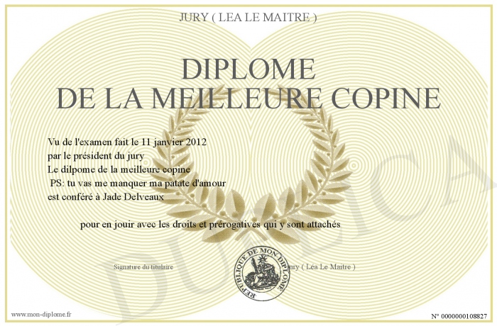 Envoyez par email votre diplome de la meilleure copine personalisé