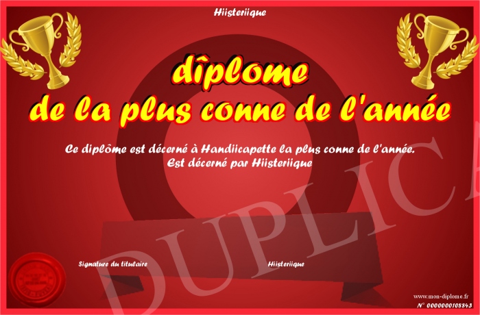 Envoyez par email votre dîplome de la plus conne de l'année personalisé