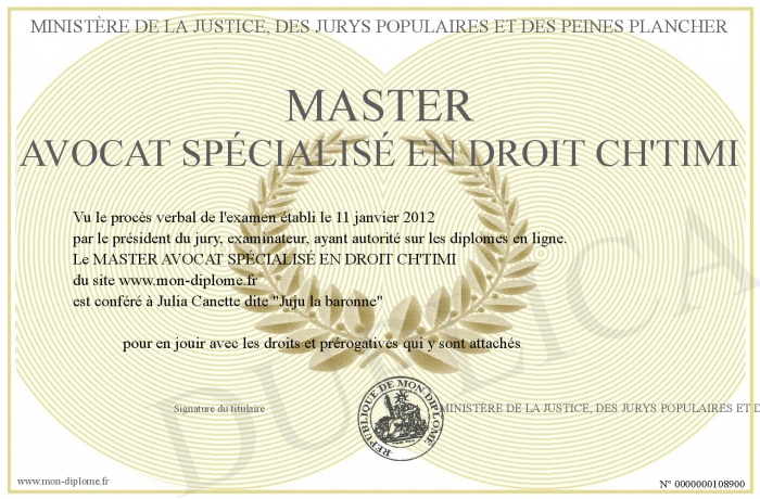 Envoyez par email votre MASTER AVOCAT SPÉCIALISÉ EN DROIT CH'TIMI personalisé