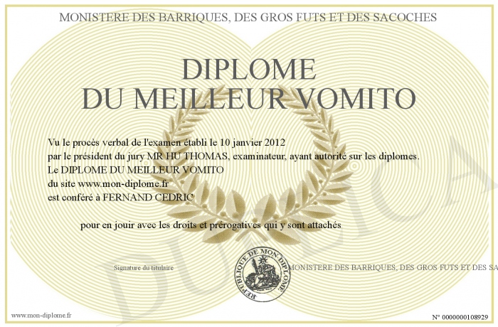 Envoyez par email votre DIPLOME DU MEILLEUR VOMITO personalisé