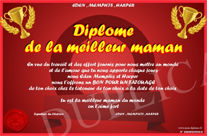 Envoyez par email votre Diplôme de la meilleur maman personalisé