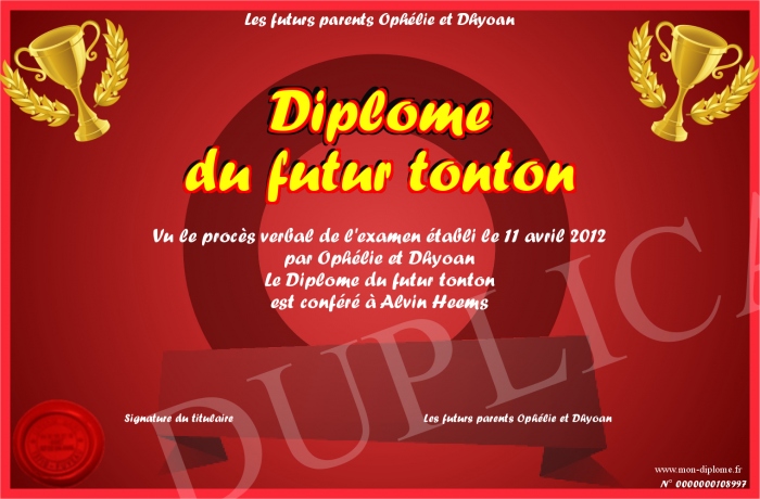 Pour demander la suppression du diplome affiché ci-haut, cliquez ici.