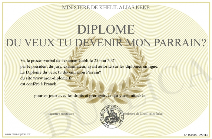 Envoyez par email votre Diplôme du veux tu devenir mon Parrain? personalisé