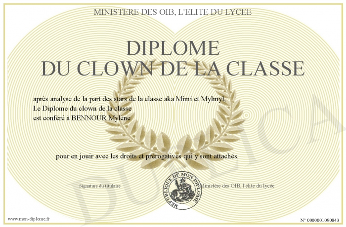 Envoyez par email votre Diplôme du clown de la classe personalisé