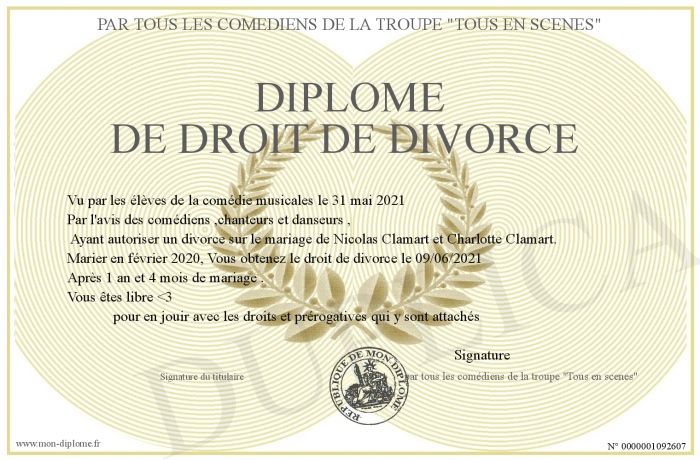 Envoyez par email votre Diplôme de droit de Divorce personalisé