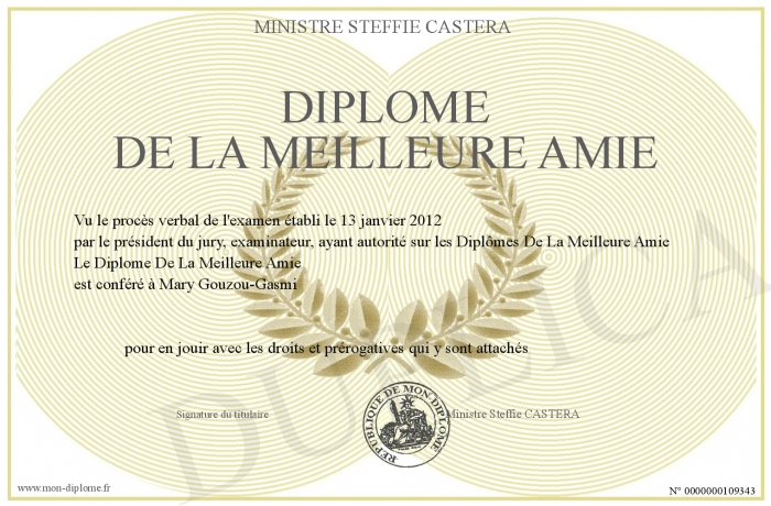 Envoyez par email votre Diplome De La Meilleure Amie personalisé