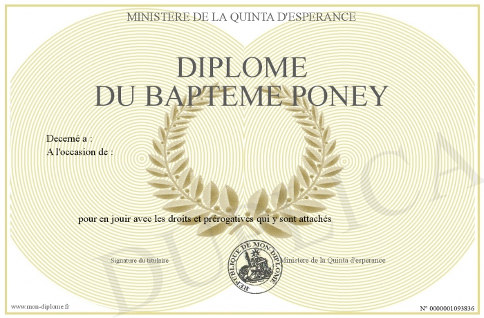 Envoyez par email votre Diplôme du bapteme Poney personalisé