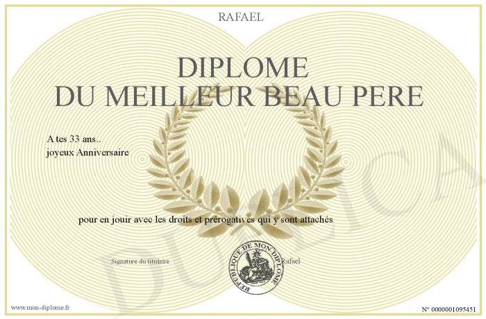 Envoyez par email votre Diplôme du meilleur beau père personalisé