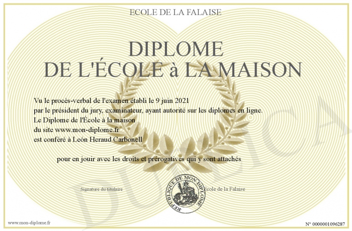 Envoyez par email votre Diplôme de l'École à la maison personalisé