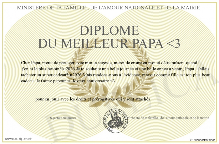 Envoyez par email votre Diplôme du meilleur papa -3 personalisé