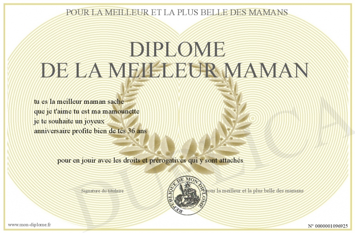 Envoyez par email votre Diplôme de la meilleur maman personalisé