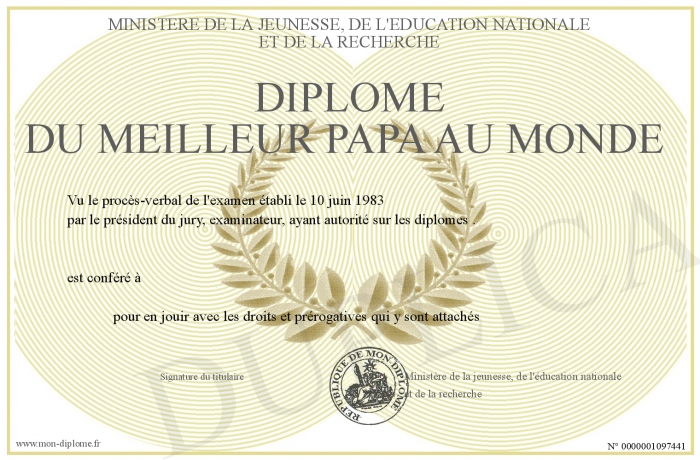Envoyez par email votre Diplôme du meilleur papa au monde personalisé