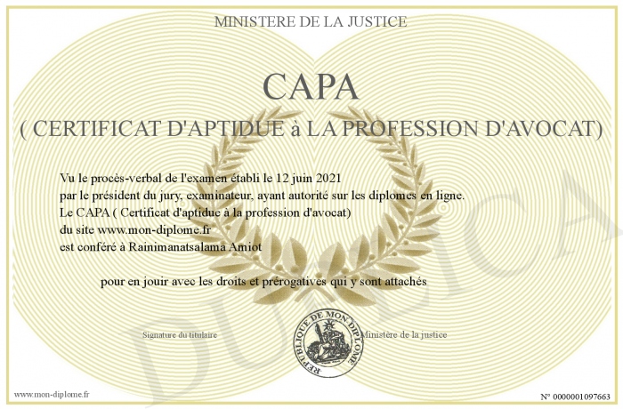 Envoyez par email votre CAPA ( Certificat d'aptidue à la profession d'avocat) personalisé