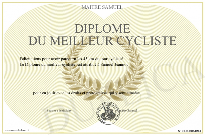 Envoyez par email votre Diplôme du meilleur cycliste personalisé